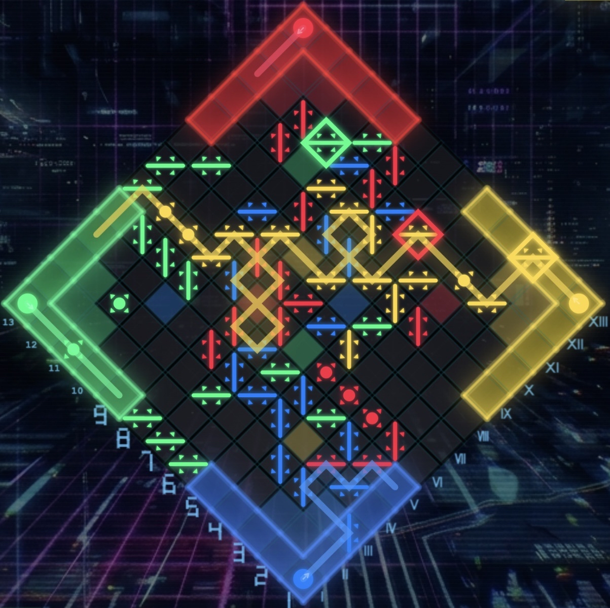 - 4-Player Chaos — Free-for-all on a 13×13 diamond board. Four lasers. Four corners. Total chaos.